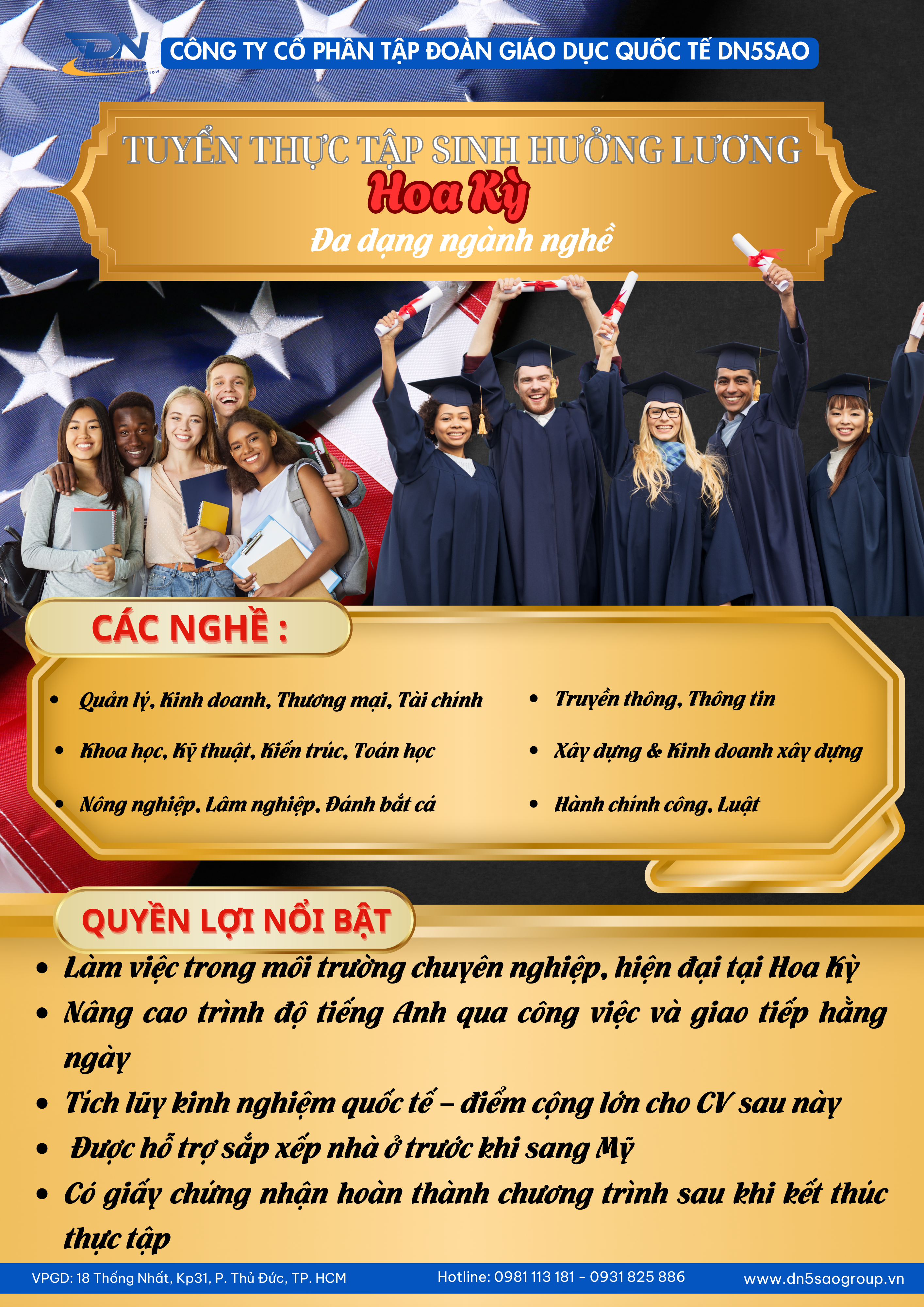? FREE 100% PHÍ TƯ VẤN & LÀM HỒ SƠ – THỰC TẬP TẠI MỸ CÙNG DN5SAO