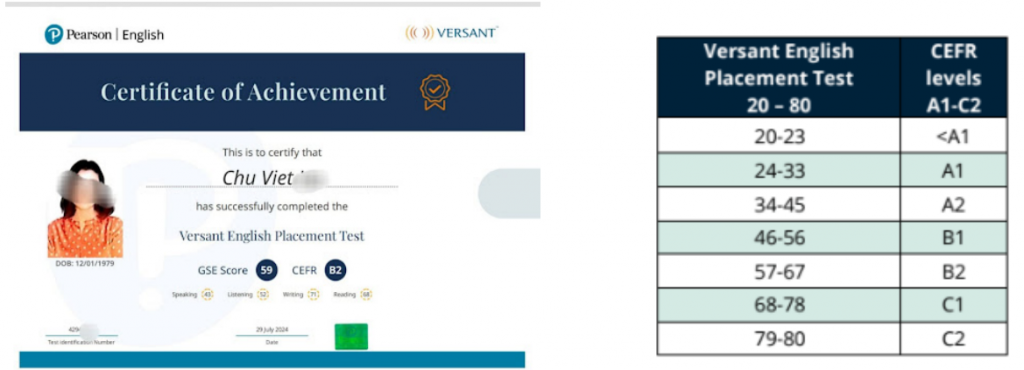Kết quả của VEPT liên kết chặt chẽ với Khung Tham Chiếu Châu Âu (CEFR), giúp đánh giá mức độ thành thạo tiếng Anh theo sáu bậc từ A1 đến C2. Điều này giúp thí sinh và các tổ chức dễ dàng xác định trình độ tiếng Anh của mình theo tiêu chuẩn quốc tế.