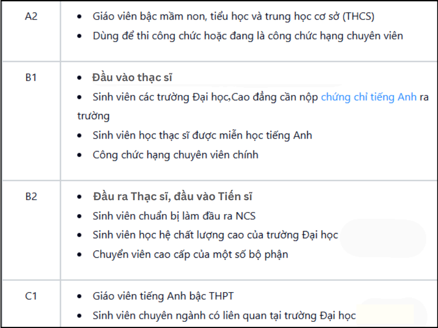 Đối tượng dự thi của VSTEP B1, B2, C1 là ai?