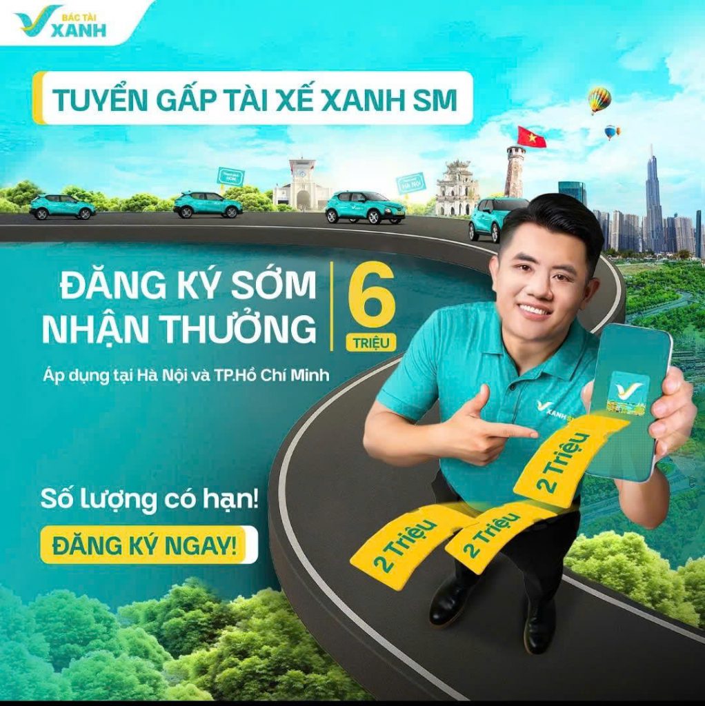 TUYỂN DỤNG TÀI XẾ TAXI XANH SM THU NHẬP LÊN ĐẾN 25tr/tháng (chấp nhận tài xế có bằng lái trên VNEID)